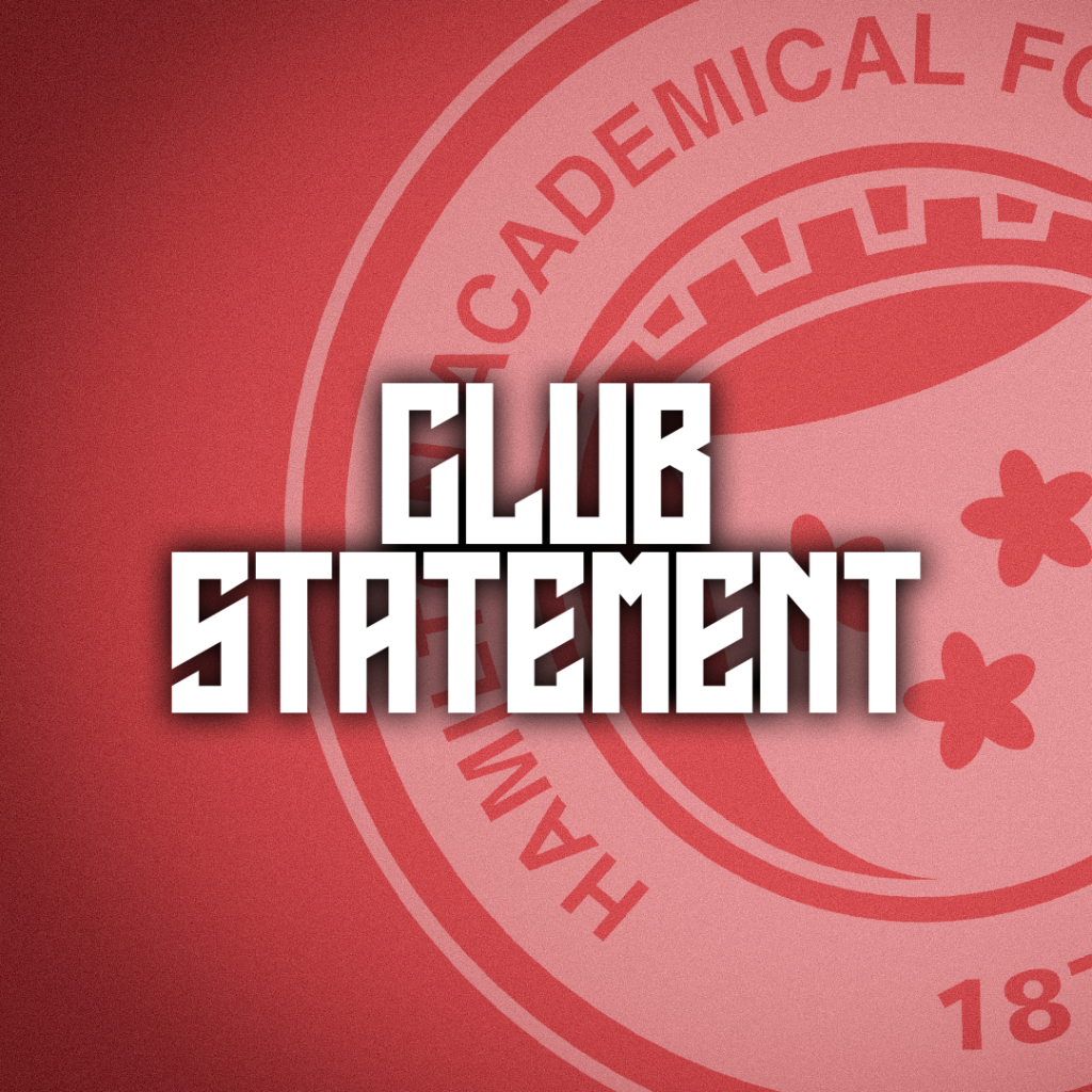 Hamilton Academical Football Club expresses its deep disappointment at the Scottish Football Association’s decision not to grant the Club’s appeal on its recent Article 10 determination, which directly concerns our Director, Gerry Strain. This outcome is not only frustrating—it raises serious questions about fairness and the willingness of the governing body to engage constructively in […]